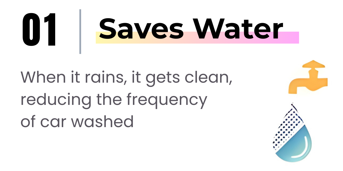 Self-cleaning effect that makes your car shine as if it’s been washed when it rains — drastically reduces the number of car washes!